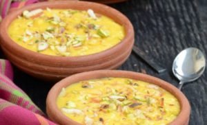MANGO PHIRNI BRULE RECIPE INGREDIENTS 1/3 litre Milk (full cream) 4 tbsp Sugar 1 cup Mango Pulp 3 tbsp Rice flour (chawal ka atta) 1 tsp Saffron 2 tbsp Sugar Extra